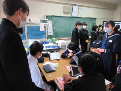 2月10日(金)今日の授業風景 その4 公開日 2023/02/10 更新日 2023/02/10 お知らせ 2年生の国語科の授業です。 「話し合いを深めるためにはどうすればよいか」の課題のもと、グループでの学習に取り組んでいます。1つのグループでは、「学校でのスマホの利用」について、そのメリットとデメリットをまとめたものを、となりのグループに紹介していました。考えの交流が進んでいます。