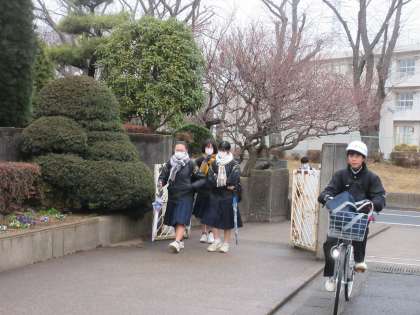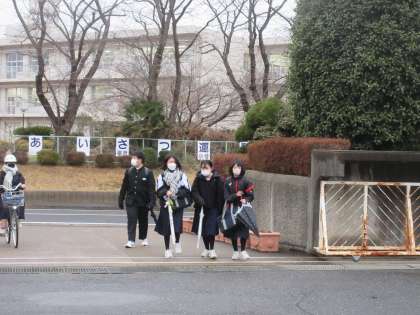 2月13日(月)朝のようす 公開日 2023/02/13 更新日 2023/02/13 お知らせ 2月第3週の朝を迎えました。今日は1日、雨の予報が出ていますが、生徒たちの登校時刻は雨はあがっていて、生徒たちも登校しやすかったと思います。久しぶりに全学年そろっての登校です。正門前では、爽やかなあいさつが聞こえてきます。 今週も生徒一人一人が生き生きと活動できるように、全職員で見守ってまいります。
