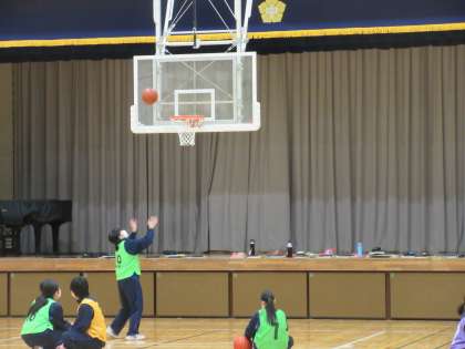 2月15日(水)今日の授業風景 その5 公開日 2023/02/15 更新日 2023/02/15 お知らせ 2年生の体育科の授業です。 体育館ではバスケットボールに取り組んでいます。ちょうどシュートの練習に取り組んでいました。担当の先生のアドバイスを聞き、20秒間で何本シュートが決まるかチャレンジしていました。集中して、繰り返しゴールを目指しています。