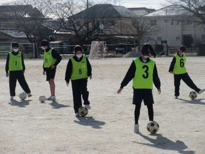2月15日(水)今日の授業風景 その6 公開日 2023/02/15 更新日 2023/02/15 お知らせ 2年生の体育科の授業です。 グラウンドでは、サッカーの練習に取り組んでいます。一人一人がサッカーボールをもち、右足・左足とボールを動かしています。基本の練習、大切ですね。温かな陽差しを受けながら、生徒たちは生き生きと活動していました。