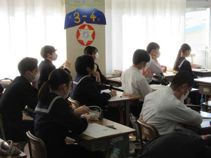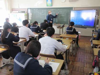 2月15日(水)今日の授業風景 その9 公開日 2023/02/15 更新日 2023/02/15 お知らせ 3年生の社会科の授業です。 「時差の受験生向け問題」にチャレンジしていました。3年生の教室では、振り返りを大切にした学習に取り組んでいます。どんな課題も解決を目指して頑張る3年生。応援しています!