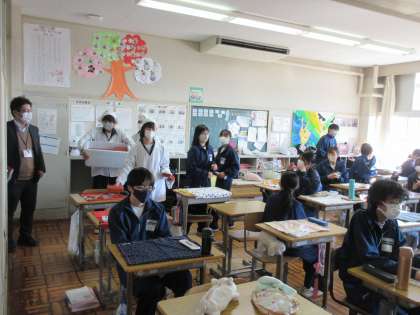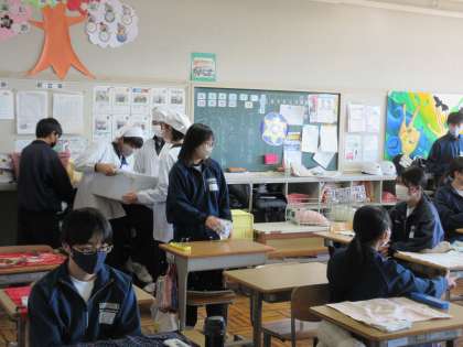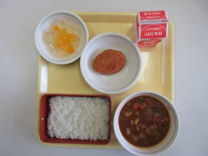 2月16日(木)今日の給食 公開日 2023/02/16 更新日 2023/02/16 お知らせ 今日の給食のメニューは、ごはん・牛乳・鮭のメンチカツ・チキンカレー・りんごとみかんのゼリー です。 2年5組の給食の準備風景を見に行くと、ワゴンが給食室から届くと、給食当番がてきぱきと配膳台にカゴなどを移動・準備する姿が見られました。どの教室も協力体制ばっちりの2年生です。今日もおいしく給食をいただきました。