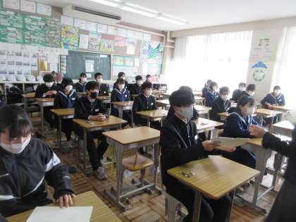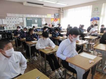 2月17日(金)今日のテスト風景 公開日 2023/02/17 更新日 2023/02/17 お知らせ テスト5分前の3年生の教室のようすです。 落ち着いてテストに臨む本校生徒たち。全教室で同じような雰囲気で、生徒たちはテストに臨むことができています。一人一人頑張っていました。