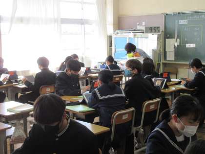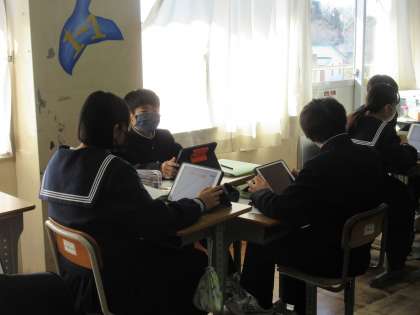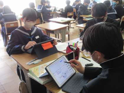 「上手に商品を購入するには」という課題に向けて、自分たちの考えをまとめています、オンラインか実店舗で購入するか、日用品と家具について、思考ツールに考えをまとめながら、その良さや気を付ける点などを考えています。この後、全体で考えを共有し、思考を広げていきます。