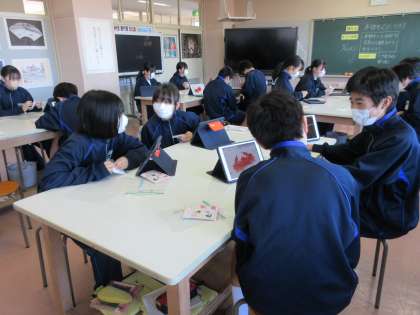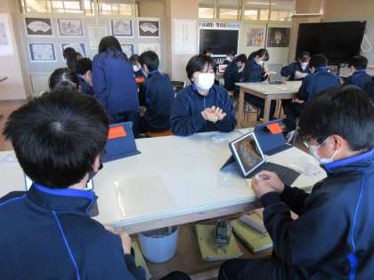 2月21日(火)今日の授業風景 その7 公開日 2023/02/21 更新日 2023/02/21 お知らせ 1年生の美術科の授業です。 「本物そっくりにつくろう!」という課題のもと、粘土を活用して造形していきます。りんごやいちご、きゅうり・・・といったものを造っていきます。粘土には絵の具なども混ぜ、色をつけていきます。久しぶりの粘土の感触を生徒たちは楽しんでいるように感じられました。