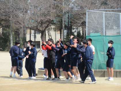 3月8日(水)今日の授業風景 その3【3年生学年レク】 公開日 2023/03/08 更新日 2023/03/08 お知らせ クラスごとの応援も盛り上がっていました。得点が入ると全員で大喜び!賞をもらおうと全力で取り組んでいました。