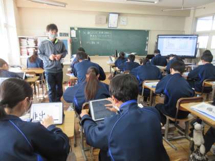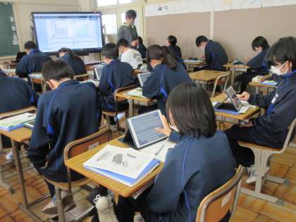 3月8日(水)今日の授業風景 その5 公開日 2023/03/08 更新日 2023/03/08 お知らせ 2年生の技術科の授業です。 エアコンの消費量とガソリン乗用車の燃費のグラフを見て、考えを深めています。今日の課題は「エネルギー交換の技術の最適化」です。エネルギーについて、イメージを広げる生徒たちの姿が見られています。