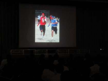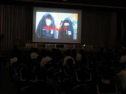 3月8日(水)3年生を送る会 その2 公開日 2023/03/08 更新日 2023/03/08 お知らせ 3年生の中学校生活を振り返る動画が流れました。自然に歓声があがる思い出深い写真ばかりです。(画像が暗くなっておりますが、ご了承ください。)