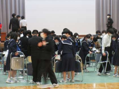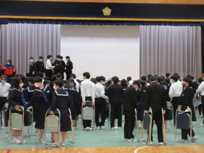 3月8日(水)3年生を送る会 【番外編】 公開日 2023/03/08 更新日 2023/03/08 お知らせ 3年生が送る会が終わったあと、いすの片付けをする3年生。最後の片付けまで進んで行ってくれる3年生。素晴らしいですね! きっと、思い出に残る卒業式を創り上げてくれることでしょう。「3年生を送る会」心温まる感動の行事になりました。 明日も頑張っていきましょう!