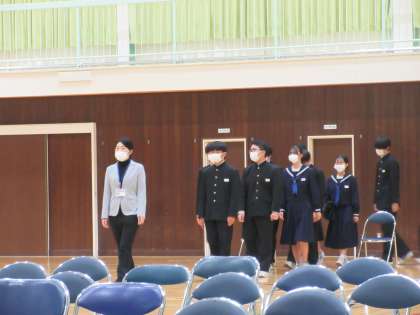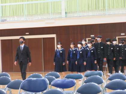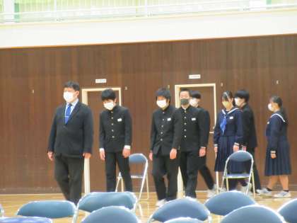 3年生は、卒業式予行を行いました。入場からスタートです。