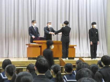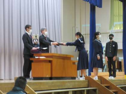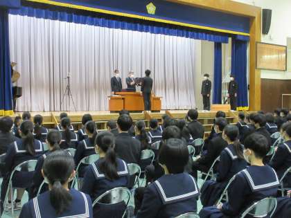 3月9日(木)今日の授業風景 その3【卒業式予行】 公開日 2023/03/09 更新日 2023/03/09 お知らせ 卒業証書授与、記念品授与・贈呈・・・など、卒業式当日の流れを確認しました。1つ1つの動きを確認する3年生。卒業式が本当に近づいてきました。 3年生への温かい見守りと応援をよろしくお願いします。