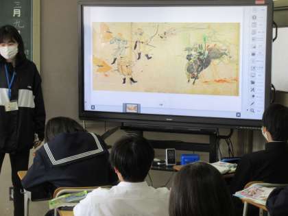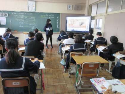 3月9日(木)今日の授業風景 その7 公開日 2023/03/09 更新日 2023/03/09 お知らせ 1年生の社会科の授業です。鎌倉時代の学習も進み、「元寇」についての学習に入っていました。モンゴル襲来の当時の絵を見て、戦い方の違いを話し合っていました。電子黒板に大きく映し出された絵を見て、生徒たちは新たな気付きにつながっていました。
