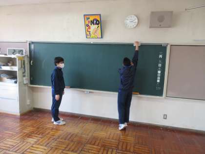 3月9日(木)3年生 奉仕作業のようす その4 公開日 2023/03/09 更新日 2023/03/09 お知らせ 水道もきれいになりました!教室の黒板のきれいさ、驚きです!廊下では・・・。 3年生の皆さん。お疲れ様でした。1年間使ってきたところを感謝の気持ちを込めて、しっかりきれいにしてくれました。ありがとう!