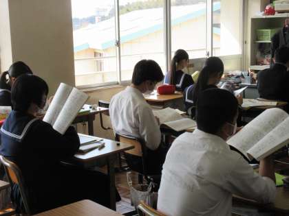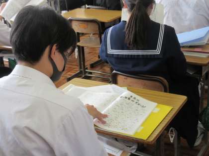 3月10日(金)今日の授業風景 その6 公開日 2023/03/10 更新日 2023/03/10 お知らせ 続いて、3年生の教室では、卒業文集が配られました。生徒たちの思いがこもった文章。友達のページやクラスのページを熱心に読む姿が見られました。卒業を実感する一時ですね!