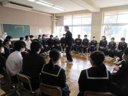 3月10日(金)今日の授業風景 その7 公開日 2023/03/10 更新日 2023/03/10 お知らせ 3年生の学級活動もあと2時間。クラスの仲間とレクレーションをする教室もありました。クラスの全員で楽しく過ごせる時間もあと少し・・・。教室からは、生徒たちの歓声が聞こえていました。