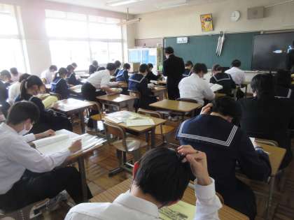 3月10日(金)今日の授業風景 その8 公開日 2023/03/10 更新日 2023/03/10 お知らせ 3年生の4時間目は、担任の先生から通知表が渡される時間です。担任の先生から、この1年で頑張ったこと・成長したことや伸びたことなどを話していただいていました。 教室の中で待機する生徒は、卒業文集を読んでいます。切り替えができることや落ち着いた雰囲気は、3年生も、そして1・2年生も今日も継続されています。