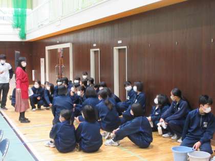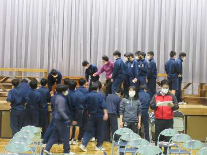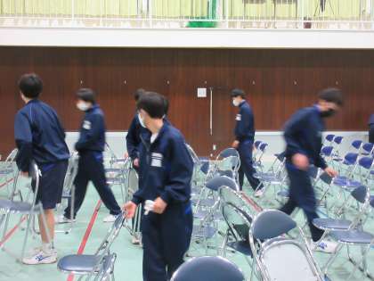 体育館では2年生が椅子の準備や装飾など、協力して進めています。2年生も頑張っています!