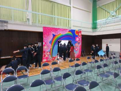 体育館の準備も進んできました。あとは卒業証書授与式の当日、会場の中をぜひ見てください。