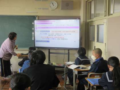3月14日(火)今日の授業風景 その1 公開日 2023/03/14 更新日 2023/03/14 お知らせ 1年生の保健の授業です。 ストレスと心の発達についての学習に取り組んでいました。教室を訪問した時は、ちょうど「マスクを外すこと」についても、ストレスになる場合があることに触れられ、自分たちの行動をどうあるべきか考えるきっかけになっていました。