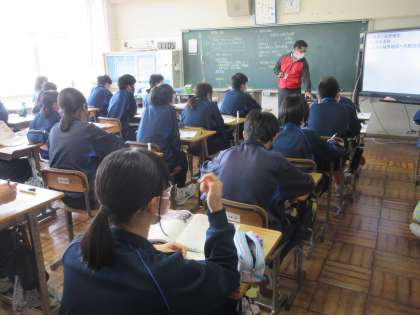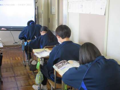 3月14日(火)今日の授業風景 その4 公開日 2023/03/14 更新日 2023/03/14 お知らせ 2年生の社会科の授業です。 「韓国と中国ではどのような動きがあり、政治が変化したか」について学習を進めています。日露戦争の頃の様子をイメージしながら、その当時の人々の思いに迫ります。資料や担当の先生の話から、考えを広げる2年生です。