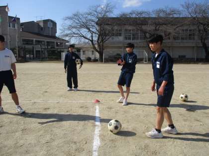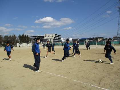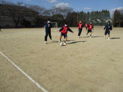 3月14日(火)今日の授業風景 その7【2年生学年レク】 公開日 2023/03/14 更新日 2023/03/14 お知らせ クラス対抗のサッカーの試合のようすです。ゴールを目指し、クラスみんなで頑張っています!