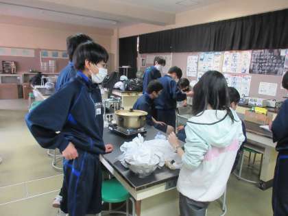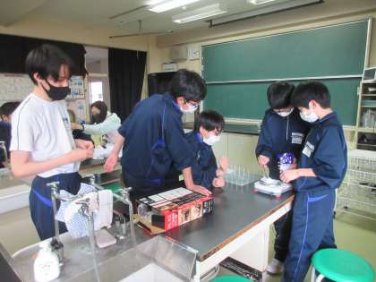 3月14日(火)放課後のようす その3 公開日 2023/03/14 更新日 2023/03/14 お知らせ 科学研究部の活動風景です。 理科室では、科学研究部が科学の取組にチャレンジしています。テーマは「染め物」をつくるです。ミョウバンや水を決められた重さや量にするため、慎重に計測しています。協力して科学を追究する生徒たちへの応援をよろしくお願いします。