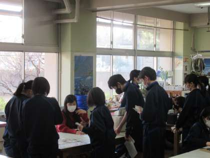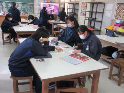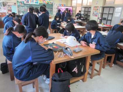 卒業した美術部の3年生に思いを込めながら作品づくりに取り組んでいます。ていねいに作業を進める生徒たち。顧問の先生にアドバイスもいただきながら、よりすてきな作品を目指して頑張っています。応援よろしくお願いします。