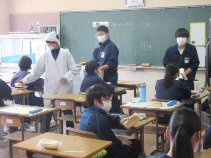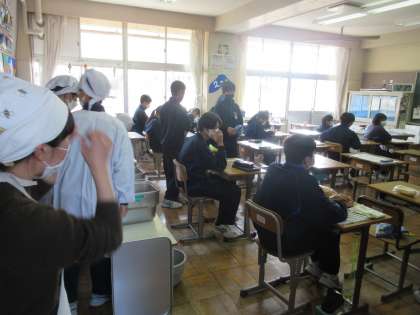 2年生の給食準備風景です。今日も協力体制ばっちりな教室の雰囲気と率先して活動をする当番の生徒の頑張りで、準備がスムーズに進んでいました。おいしく今日も給食をいただいています。