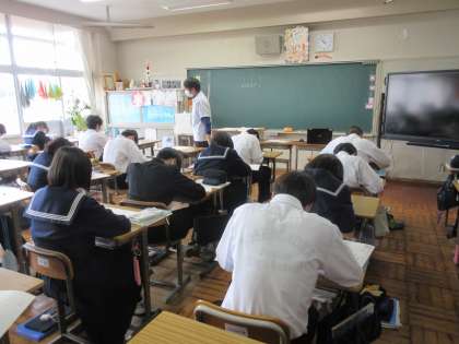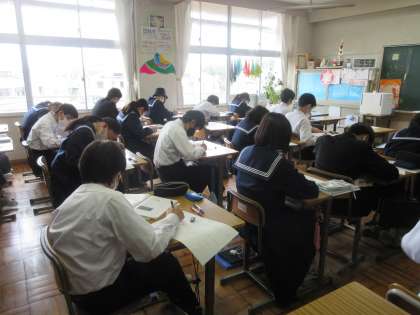 3月17日(金)今日の授業風景 その1 公開日 2023/03/17 更新日 2023/03/17 お知らせ 2年生の数学科の授業です。 多項式の計算のプリントに取り組んでいました。1年間の学習のまとめの時期です。繰り返し問題に触れることで、学習内容の定着を目指していました。集中して問題に取り組む2年生の姿が今日も見られています。