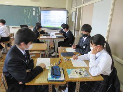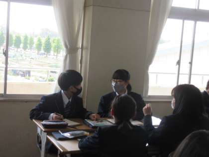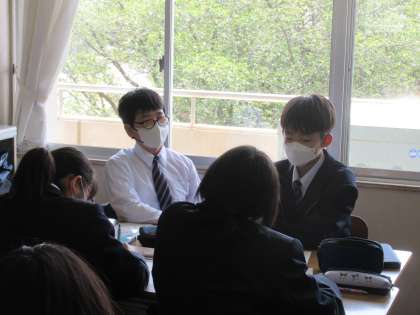 「ものの貸し借りはいいのに、どうして、お金の貸し借りはダメと言われるのはなぜか」というテーマのもと、グループで話合いをしています。グループの中で、ああではないかこうではないかと考えを交流する姿が見られました。何でも話し合える雰囲気、いいですね!