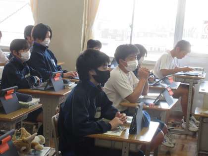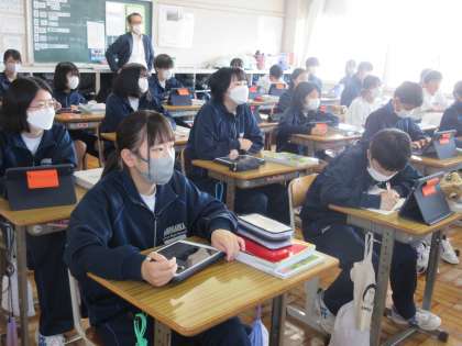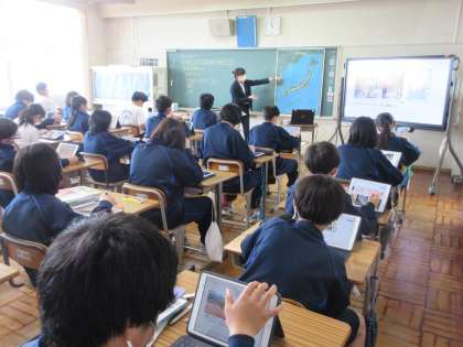 4月20日(木)今日の授業風景 その9 公開日 2023/04/20 更新日 2023/04/20 お知らせ 2年生の社会科の授業です。 「なぜ、日本は様々な気候があるのか」について、学習を進めています。黒板に提示された日本地図。暖流や寒流、季節風などをもとに、気候の秘密に迫っていました。集中して、黒板を見ながらイメージを膨らませる2年生。頑張っています!