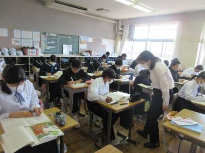 5月10日(水)今日の授業風景 その4 公開日 2023/05/10 更新日 2023/05/10 お知らせ 2年生の国語科の授業です。 「字のない葉書」の学習を進めていました。「父の思いとはどんなものか」という課題のもと、一人一人読み取りを深めています。終戦の年の四月、小学1年生の妹とといった言葉をキーワードに考えを広げていました。