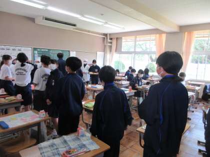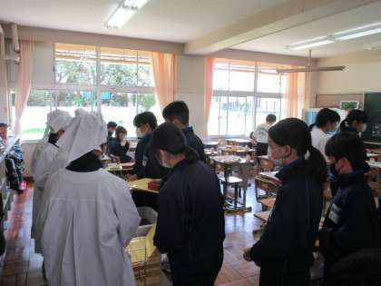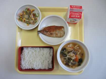 5月11日(木)今日の給食 公開日 2023/05/11 更新日 2023/05/11 お知らせ 今日の給食のメニューは、ごはん・牛乳・いわしのピリ辛ソース・キャベツとコーンのサラダ・じゃがいもとわかめのみそしる です。 1年生の給食準備風景を見に行くと、順序よく協力し合う生徒たちの姿が見られました。1年生の準備にかかる時間も日に日に短縮しているようです。 今日もおいしく給食をいただきました。