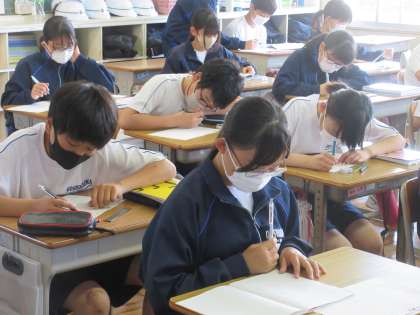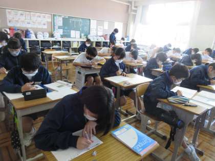 5月16日(火)今日の授業風景 その2 公開日 2023/05/16 更新日 2023/05/16 お知らせ 1年生の数学科の授業です。 集中して、復習プリントに取り組んでいます。まずは自分の力で全力で解決を目指します。時には、友達の考えを聞きながら・・・。集中する1年生の姿を見て、写真をついつい撮ってしまいました。