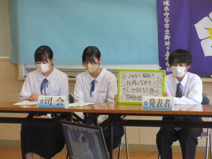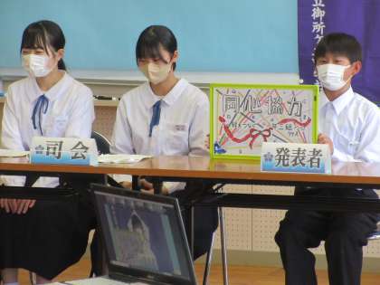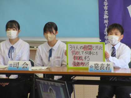 続いて、学級目標の発表がありました。 1年1組・2組・3組の目標です。