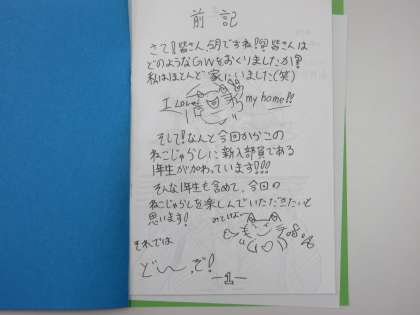 5月17日(水)放課後の様子【文芸部】 公開日 2023/05/17 更新日 2023/05/17 お知らせ 放課後、文芸部の3名が部誌「ねこじゃらし」を校長室に届けてくれました。 今回は「こどもの日号」です。中を見ると、鯉のぼりや兜など、まさにこどもの日。すてきなイラストや言葉がかかれていました。 文芸部に1年生が入ったので、様子を聞いてみると、先輩たちは「にぎやかになった!」、1年生は「とても楽しい!」と話してくれました。文芸部への応援、よろしくお願いします。
