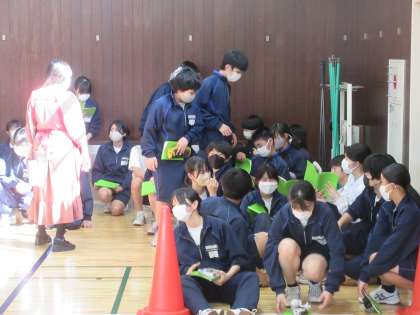 3年生の修学旅行へ向けた確認は、この後、体育館でも行われました。