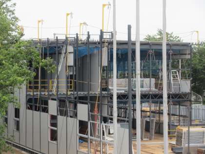 5月19日(金)朝の様子 その4 公開日 2023/05/19 更新日 2023/05/19 お知らせ 体育館のグラウンド側に建てられている「仮校舎」。仮校舎(8月後半以降に3年生が活用する予定)の姿が少しずつ見えてきました。校舎改修工事に向けて、準備が進んでいます。