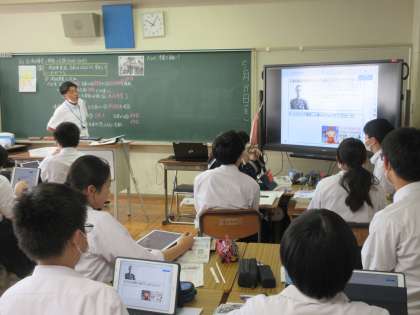 5月19日(金)今日の授業風景 その4 公開日 2023/05/19 更新日 2023/05/19 お知らせ 3年生の社会科の授業です。 満州事変後の日本の変化について学習が進められていました。「なぜ、満州国は溥儀を主将にしたのか。」について生徒たちの考えを交流させていました。グループに鳴り、予想や考えを積極的に発言する生徒たち。頑張っていました!