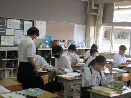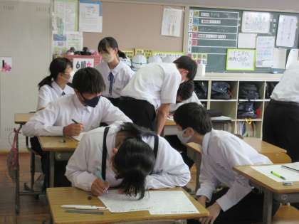 5月19日(金)今日の授業風景 その5 公開日 2023/05/19 更新日 2023/05/19 お知らせ 2年生の数学科の授業です。 単元テストに向けて、復習問題に取り組んでいました。自分で根気強く解いたり、近くの友達と考えを交流させたりしながら、解決を目指していました。頑張ってほしいです!