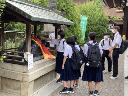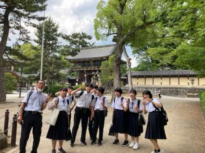 北野天満宮でのひとコマです。班別行動も、後半です。笑顔で活動しています。