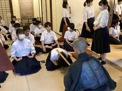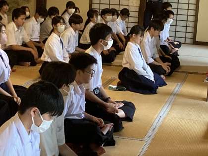 5月22日(月)修学旅行2日目 その15 公開日 2023/05/22 更新日 2023/05/22 お知らせ 警策により、喝を入れていただき、新たな気付きにつながる貴重な体験でした。(座禅体験では、妙心寺のお坊様より、一生懸命取り組む生徒たちだと、お褒めの言葉をいただきました。どんな事にも一生懸命取り組む素晴らしい3年生です!)