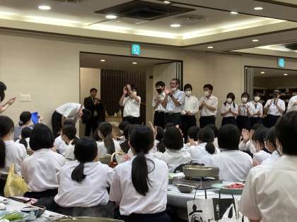 何も知らされずに、前に出てきた本人も、みんなからの祝福の歌に、感激していました。(心が温まるできごとに、夕食会場は大いに盛り上がっていました。)