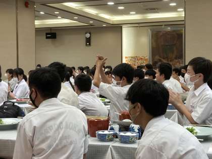 「いただきます」の前に、サプライズ!本日、誕生日の生徒へのハッピーバスデーの歌のプレゼント!