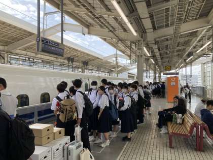 3日間、お世話になった京都から出発です。嵯峨グレースホテルの方も見送りに来ていただきました。(見送りに来てくださった方にも、手を振る生徒たち。素敵な光景でした。)
