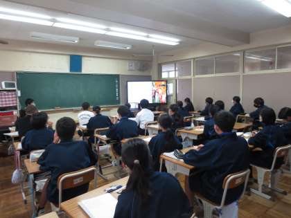 5月23日(火)今日の授業風景 その3 公開日 2023/05/23 更新日 2023/05/23 お知らせ 2年生は、キャリア教育の一環としてJICA海外協力隊でベトナムでお仕事をされていた方のお話をオンラインで伺いました。事前に提出した2年生みんなからの質問に応える形を中心に、様々な経験や考えをお話しくださいました。たくさんのことを知り、学び、考えた1時間でした。ありがとうございました。