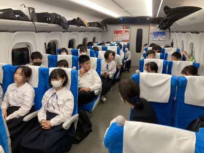 5月23日(火)修学旅行3日目 その16 公開日 2023/05/23 更新日 2023/05/23 お知らせ 新幹線は、熱海市付近まで戻ってきました。 新幹線の車内では、帰りの会が各クラスごとに行われています。明日以降の連絡が行われました。3日間を振り返り、充実した時間をすごせたこと、仲間の絆がふかまったことなどの話がありました。素晴らしい修学旅行になったと感じています。
