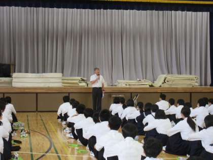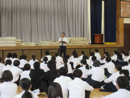 学校長や学年主任の先生から、修学旅行を通して、一人一人が成長したこと、学んだことをこれから活かしていくことを期待している・・・などの話がありました。