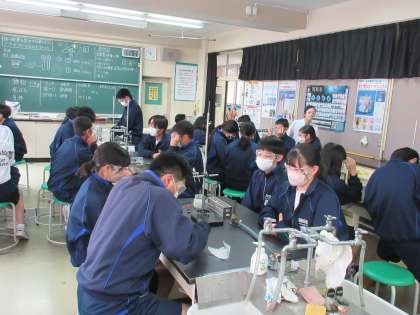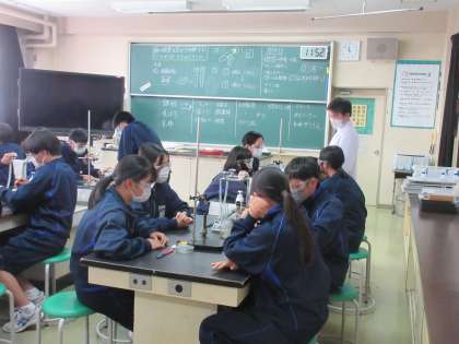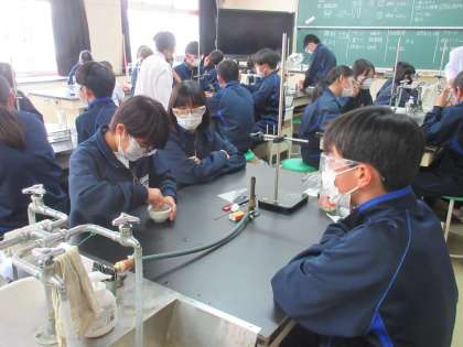 5月25日(木)今日の授業風景 その2 公開日 2023/05/25 更新日 2023/05/25 お知らせ 2年生の理科の授業です。 「鉄と硫黄を混ぜて加熱すると」というテーマのもと理科室での実験に取り組みます。教室を訪問した時は、ちょうど2つの物質を混ぜているところでした。注意事項を確認し。この後、実験に取り組みます。実際の体験を通して、たくさんのことに気付いていってほしいです。(教育実習生も一緒に取り組んでいます。)