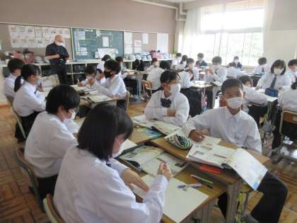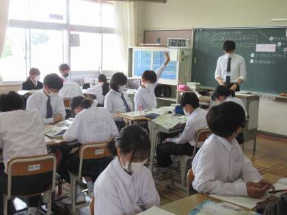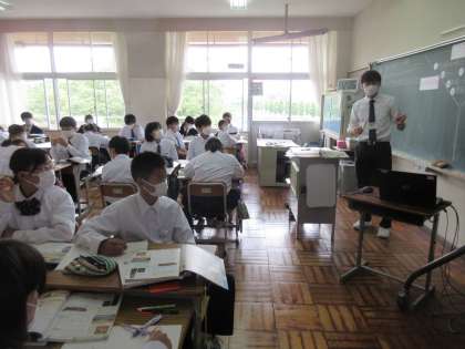 5月25日(木)今日の授業風景 その7 公開日 2023/05/25 更新日 2023/05/25 お知らせ 1年生の社会科の授業です。 古代文明の起こりと発展について学習をしていました。今日の授業は、担当の先生の指導のもと、教育実習生による授業でした。エジプト文明・インダス文明・メソポタミア文明について、時代・川・建物・・・などをキーワードにそれぞれの特徴をつかんでいました。積極的に手をあげる1年生。頑張っています! (本校の卒業生(先輩)である教育実習生も頑張っています!)